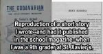 As a primary school student — and for a year or two in secondary school too — I used to participate in different competitions such as painting and drawing, and story writing. One of the times I participated in a on-the-spot short-story writing contest, I think as a 7th grader, I won first prize. I remember winning but I had completely forgotten about the story until, not long ago, a fellow graduate of my school, St. Xavier’s, found the story in the school magazine, The Godavarian, and PMed photos of it!