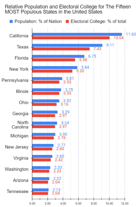 Please note that, in the discussions that follow, the figures quoted as the population of different States are assumed to represent citizens of the United States, which they are NOT because of the way census data is collected. Of course, using and quoting eligible voters where relevant would have been better BUT because I was unable to find that demographic broken by race, I couldn’t do that.