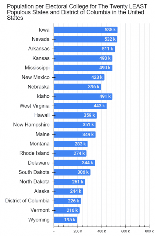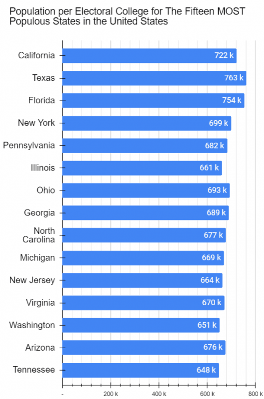 Firstly, notice how different they are. Secondly, assuming the proportion of registered voters in the three are similar to the proportion of their populations, notice how a Delegate’s vote in Wyoming represents a fraction of the population than those in California and Tennessee. Thirdly, notice how there’s also a difference between California and Tennessee.