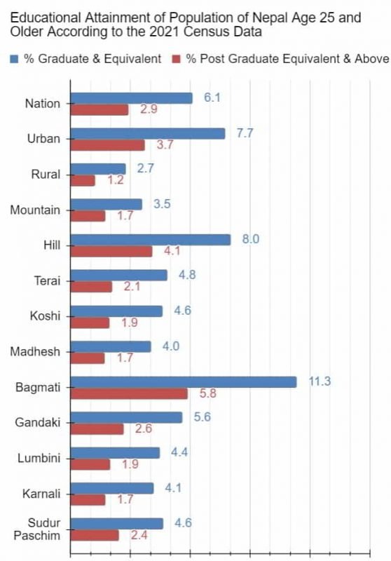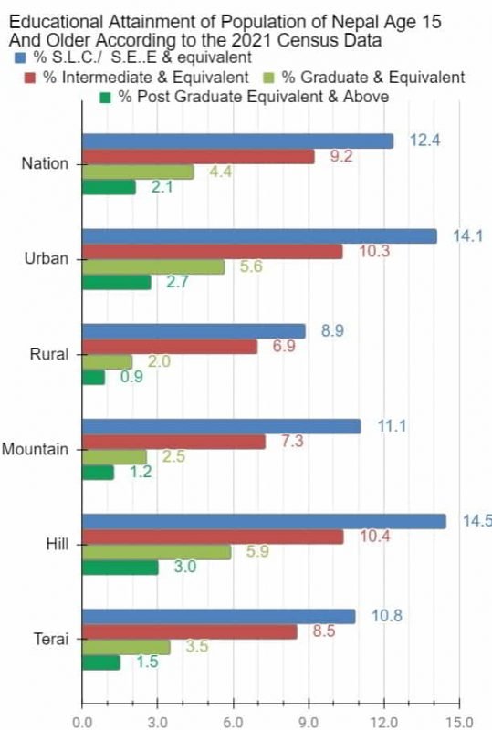 Unfortunately, education in Nepal fails the population miserably. To begin with, after the Rana oligarchs reserved education for only the hill so-called high caste Hindus for like a century, mostly males at that, the kind the country made available to the public for the last seven or so decades has failed to educate a vast majority of the population (see histograms below).