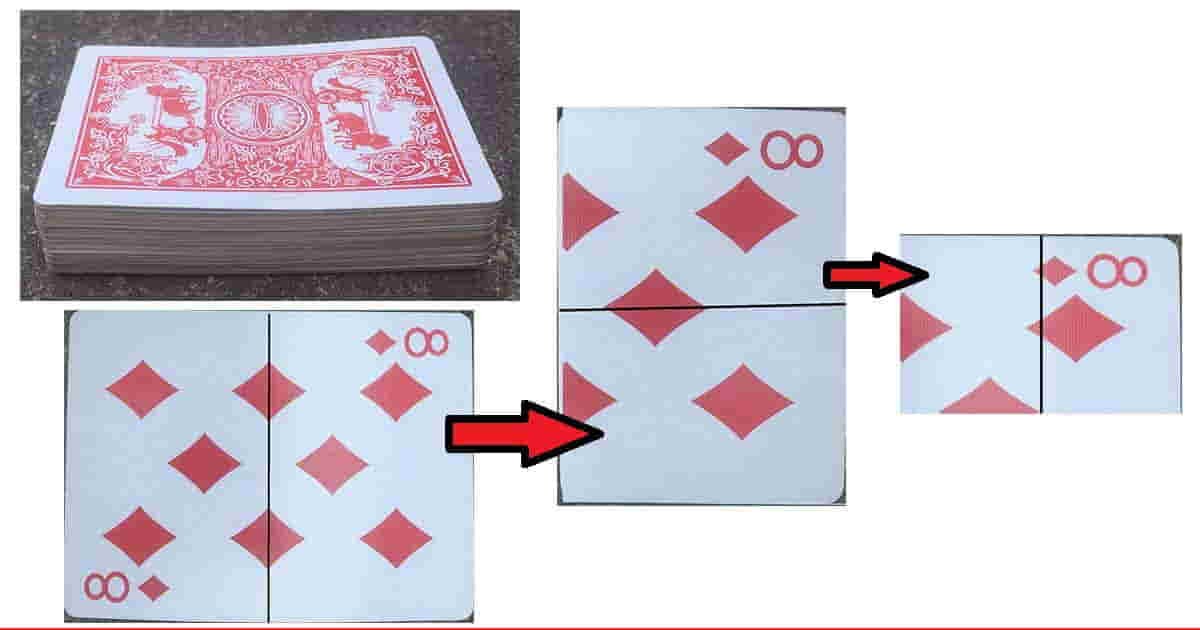 It is impossible in reality, but assuming that one could tear a playing card in two, put the halves together and tear again (getting 4), put them together again and tear (getting 8), put then together and tear and so on 52 times.